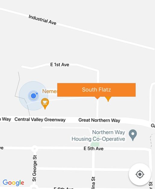 - Zoom out to the eastern side of the campus. Look for the "South Flatz" map pin located near Kafka’s Coffee.